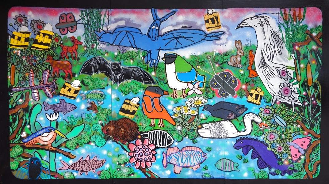 At the end of November 2023, the mural created for Friends of Cherry Hinton and Coldham’s Brooks by Rowan was unveiled by the Mayor, Councillor Jenny Gawthrope Wood at Sainsbury's.
